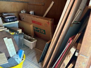 木材や工具、生活用品などが混在しており、分別が必要な状態だった倉庫の不要物を撤去し、倉庫として再利用できるように整えました。